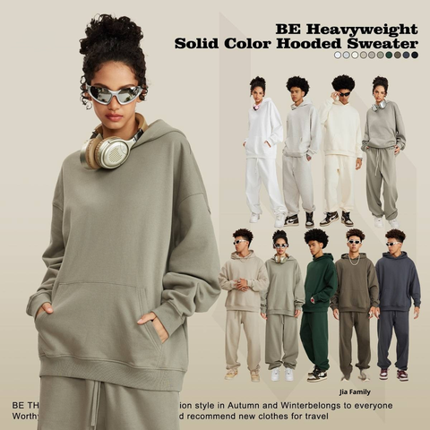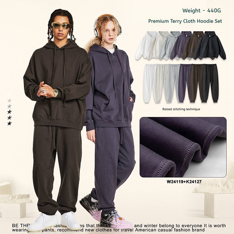 2025 inverno 440g di alta qualità 100% cotone con cappuccio di base Casual pesante Custom felpa con cappuccio e Jogger Set