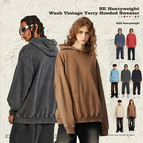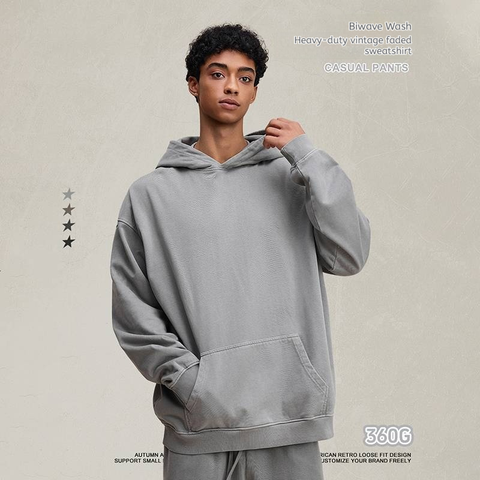 Felpa con cappuccio da uomo 480G con cappuccio in stile retrò Batik lavato in tinta unita Anti-Pilling Anti-Pilling in tinta unita
