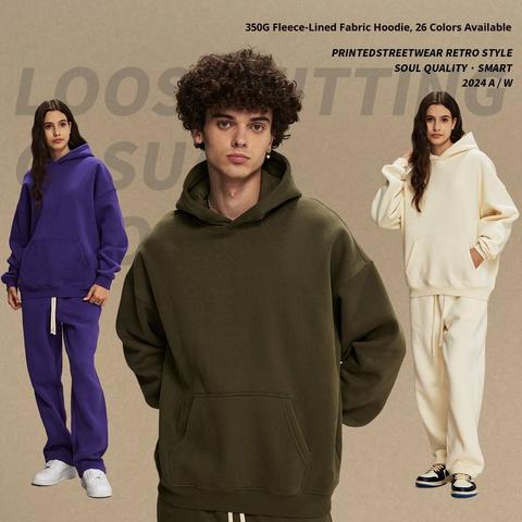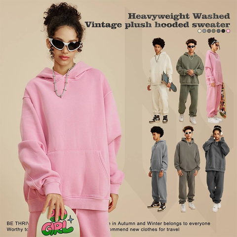Personalized Loose-washed Brushed Fleece Men's Hoodie Lined Anti-Pilling Hooded Sweatshirt