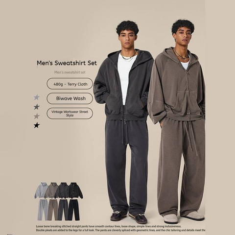 Pantaloni della tuta larghi e corti lavati con cappuccio e Set di Cardigan giacca con coulisse a gamba dritta con cappuccio e Jogger Set