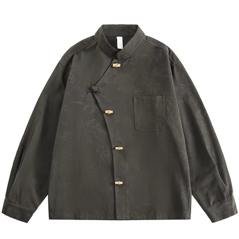 Camicia da lavoro Unisex Vintage a maniche lunghe con colletto rialzato nuovo stile cinese stile retrò con bottone ampio abito zongshan