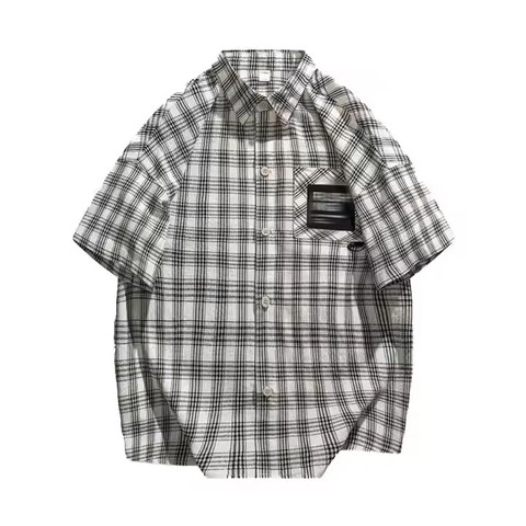 Camicia elegante con bottone di alta qualità alla moda tinta unita a maniche corte Satin a maniche corte spesso e caldo Design a quadri oversize per la primavera