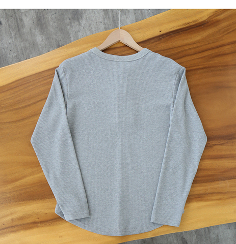 Camiseta de manga larga con cuello Henry para hombre, logotipo personalizado, mezcla de algodón suave, gofres, tres botones, estilo informal, técnicas de serigrafía