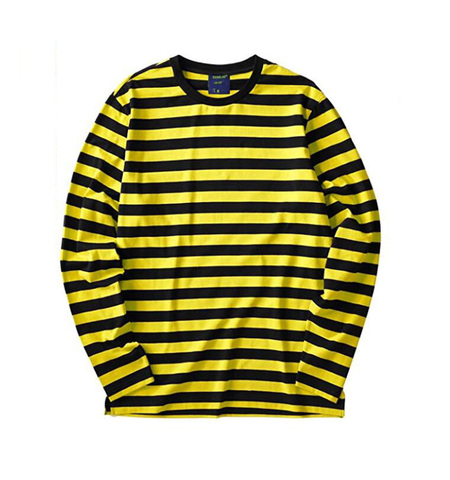 Camiseta informal de manga larga con diseño de rayas de hilo doble pesado de algodón 100% personalizada 230GSM serigrafiada para hombres de talla grande