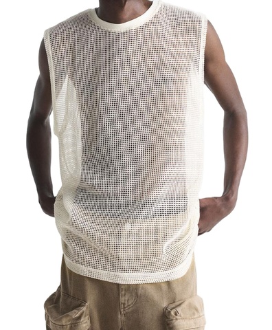 Camiseta de estilo informal con chaleco transparente sin mangas de algodón 100% personalizada OEM para hombre con diseño de malla serigrafiada