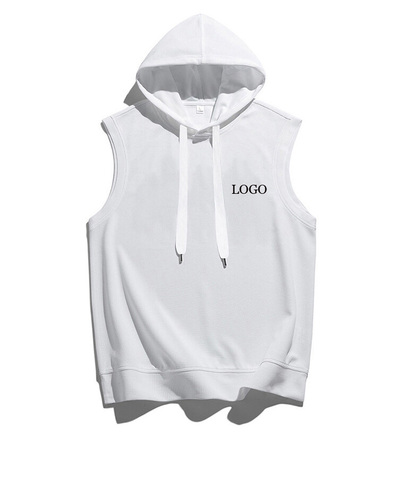 Camiseta de gofre con capucha sin mangas para hombre con logotipo personalizado 100% algodón ropa deportiva informal técnica de serigrafía de talla grande