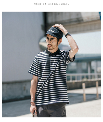 Camisetas con estampado de rayas para hombre, manga corta formal de estilo japonés para Polos, 100% algodón, serigrafía informal de talla grande